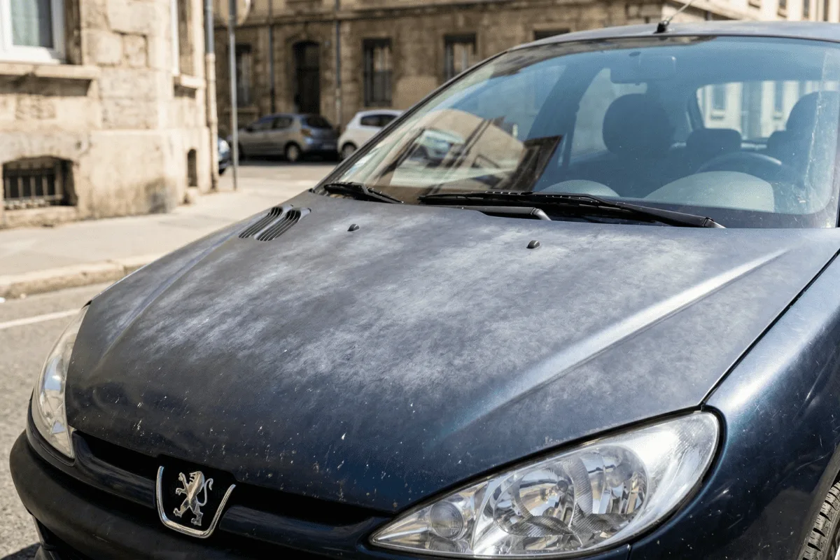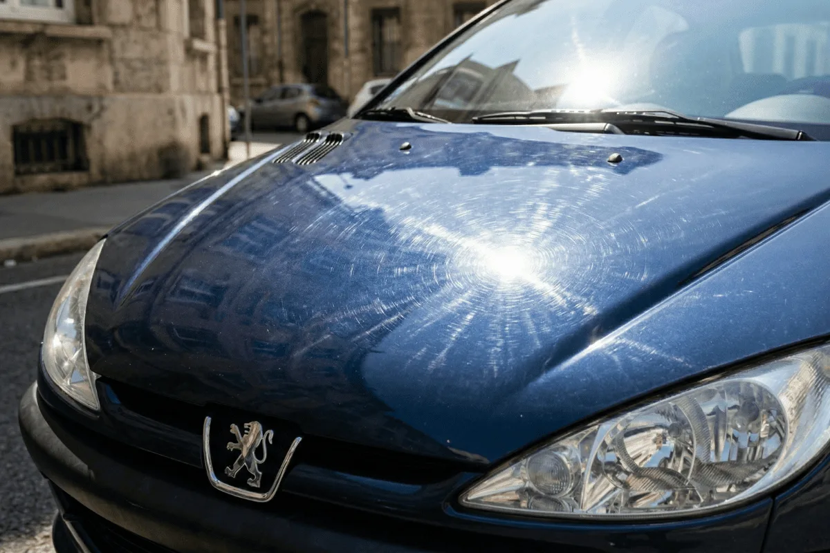 Le voile terne (oxydation) : c’est le signe le plus courant d’une exposition prolongée aux UV et à la pollution. La couleur semble « plate », sans relief, et perd sa profondeur. Même après un lavage minutieux, la peinture reste mate et ne reflète plus l'environnement de manière nette.